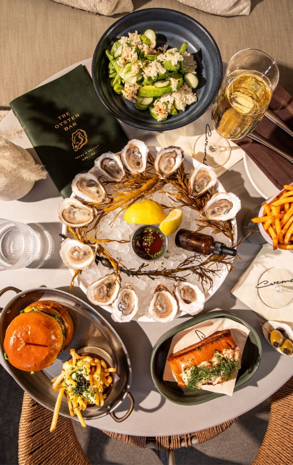 Carmel is a Wood-fire Seafood & Oyster Bar in the heart of Buckhead Village—a love letter to the coast, where the ocean breeze, the freedom, and the elements of the sea inspire every detail. In our dining room, a seafood-focused menu showcases bold, seasonal dishes artfully prepared over an open flame, while the intimate Oyster Bar captures the casual elegance of seaside dining with raw and grilled oysters, caviar service, and thoughtfully paired sips. Both experiences celebrate premium seafood and seasonal produce, inviting you on a journey to your favorite waterfront destination. Let the ocean breeze carry you away…